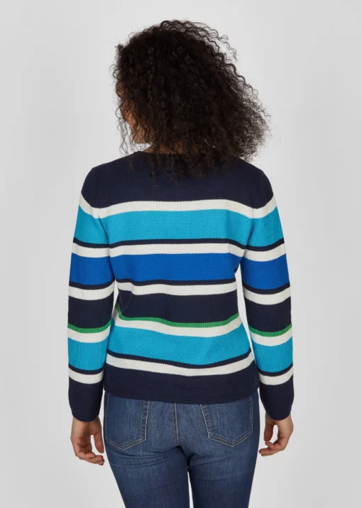 Dieser gestreifte Pullover gehört in jeden Kleiderschrank. Mit den strahlenden Farben zieht er alle in seinen Bann. In Kombination mit einer dunkelblauen Hose und Sneakern kommt der Pullover am Besten zur Geltung.