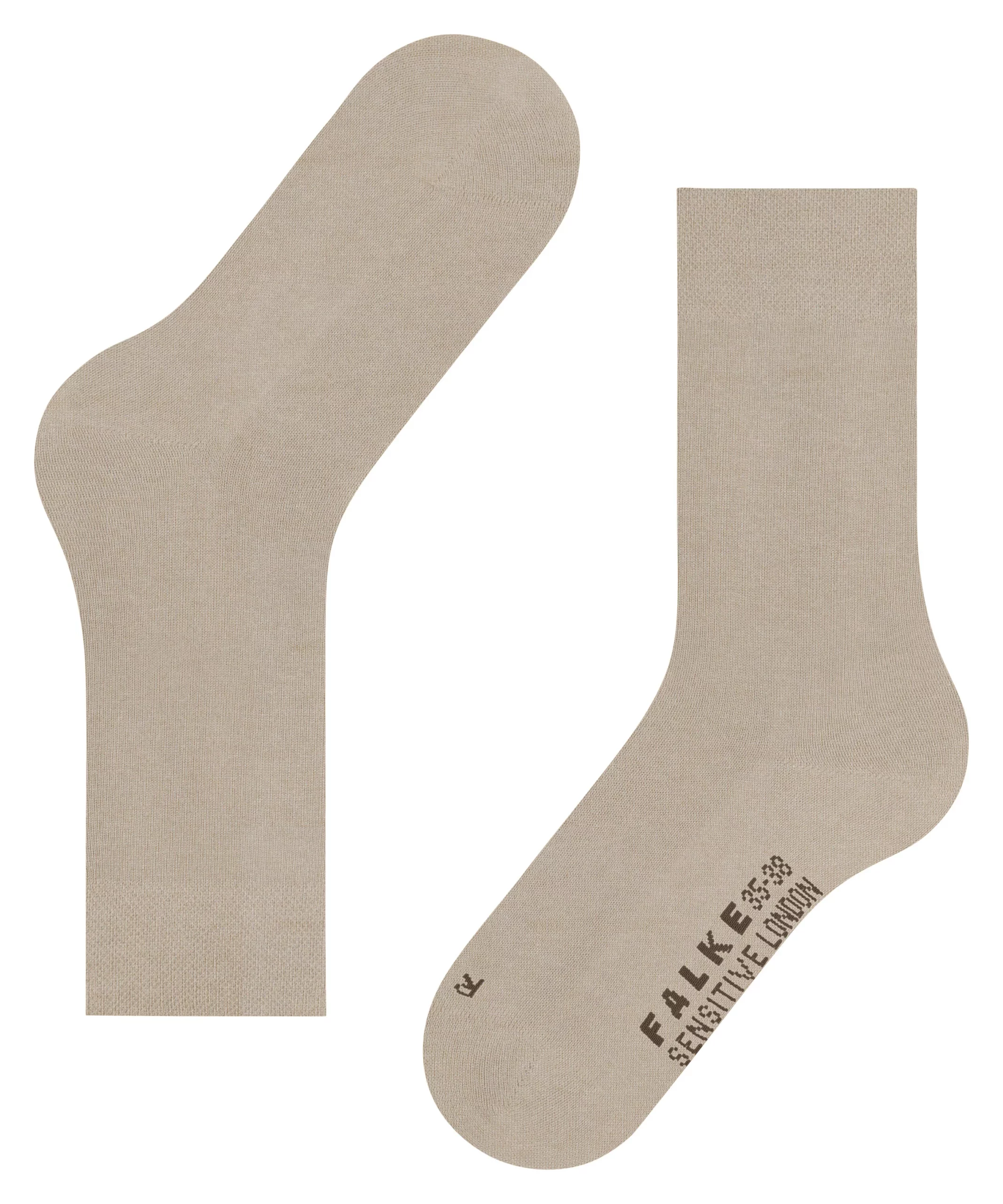 Der FALKE Sensitive London liegt durch seinen hohen Baumwollanteil angenehm weich auf der Haut. Er ist aber nicht nur ein echter Hautschmeichler, sondern auch noch nachhaltig: Er besteht nahezu vollständig aus FALKE – WE CARE – COTTON, einer ressourcenschonend und sozialverantwortlich hergestellten Baumwolle, ergänzt um einen kleinen Anteil recycelter Funktionsgarne für mehr Elastizität und eine hohe Strapazierfähigkeit des Materials. Das besonders weiche Sensitive-Bündchen sorgt in Kombination mit sehr flachen Nähten und der anatomischen FALKE-Passform für perfekten Sitz, ohne dabei einzuengen. Dadurch eignet sich der FALKE Sensitive London auch für besonders druckempfindliche Beine und Diabetiker.