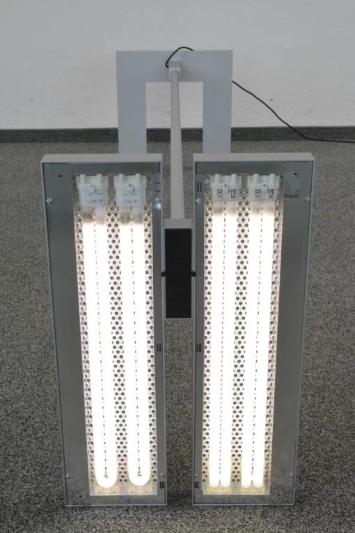 Die Regent Level Indirekt-Direktleuchte überzeugt durch ihre energieeffiziente Lichtleistung von 4×55 Watt. Gefertigt aus hochwertigem silbergrauem Metall, bietet sie modernes Design und eine angenehme Beleuchtung für Büroräume. Mit Sensorsteuerung und Dimmfunktion sorgt sie für optimale Arbeitsbedingungen.